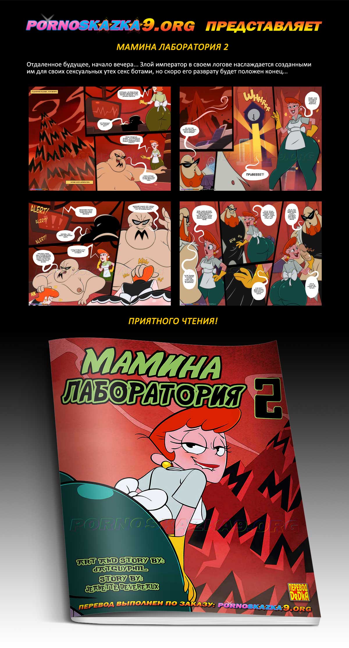Порно комикс «Мамина Лаборатория 2.» Отдаленное будущее, начало вечера… Злой император в своем логове наслаждается созданными им для своих сексуальных утех секс ботами, но скоро его разврату будет положен конец…